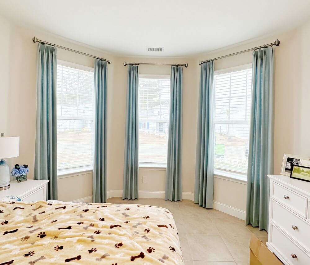 Puddled draperies extend beyond the floor, creating soft folds of fabric at the bottom. This look is romantic, dramatic, and undeniably luxurious—but it does require maintenance. Puddling works best in low-traffic areas where the fabric won’t be disturbed.