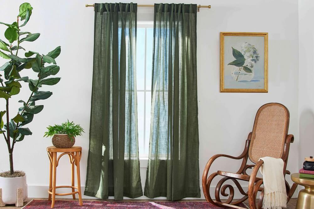 Floor-length draperies are the most timeless and versatile option. They just kiss the floor, creating a clean, tailored look that works beautifully in living rooms, dining rooms, bedrooms, and offices. This style feels intentional and elegant without drawing attention away from the rest of the room.